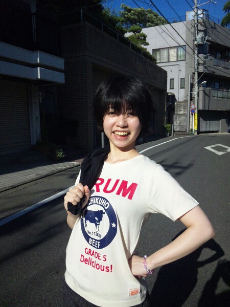 ナナエちゃんの牛好きな妹さんが着る筑穂牛Tシャツ。