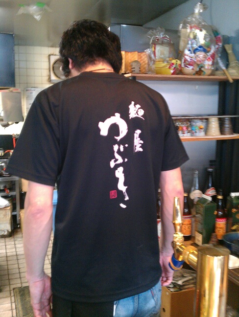 新飯塚の人気のラーメン屋・ゆぶきの働く男のTシャツ。