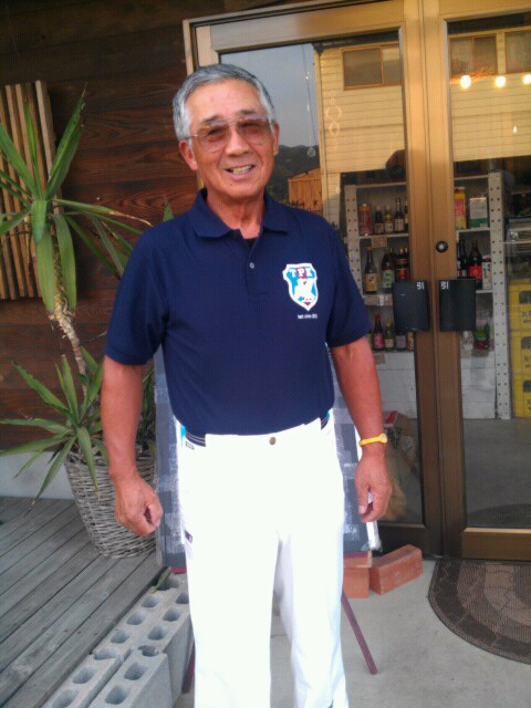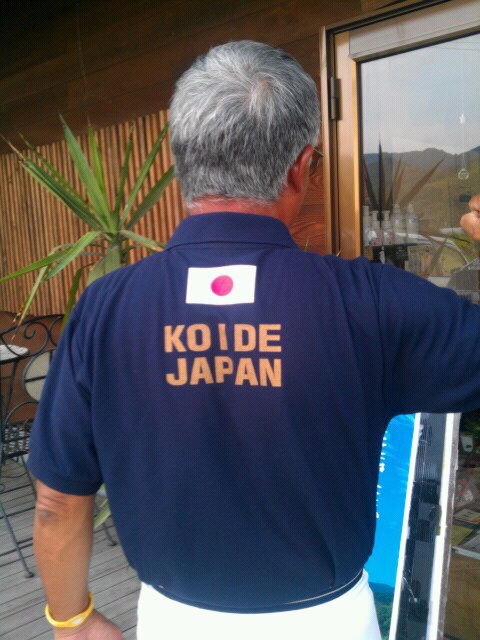 ボランティアでテストピースをつかい素敵な花壇をつくっている小出さんの「小出ジャパン」ポロシャツ。
